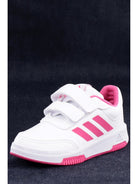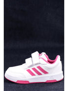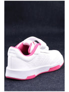 Scarpe Adidas bianche da bambina, modello Tensaur Sport 2.0 GW64. Queste sneakers Adidas bianche hanno la tomaia in mesh, la suola in gomma e il sotto suola con battistrada a pallini. Sul davanti di queste Tensaur Sport troviamo la chiusura con velcro, le iconiche 3Stripes ai lati della scarpa e il logo del brand a contrasto colore.