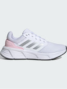 Scarpe Adidas bianche Galaxy 6 da donna IE81. Queste scarpe da running Adidas bianche hanno la tomaia in tessuto traspirante e la suola Cloudfoam che ammortizza l'impatto con il terreno garantendo ilmassimo comfort. Sul davanti di queste sneakers Adidas troviamo la classica chiusura lacci e le iconiche 3Stripes ambo i lati a contrasto colore.