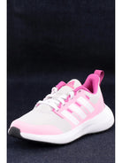 Scarpe Adidas rosa e grigie da bambina, modello FortaRun 2.0. Queste sneakers Adidas rosa e grigie hanno la tomaia in mesh con inserti in tessuto traspirante, la suola in gomma e il battistrada con texture geometrica. Sul davanti di queste Adidas troviamo la classica chiusura a lacci, le iconiche 3Stripes ambo i lati a contrasto colore e la linguetta posteriore che agevola l'entrata del piede.