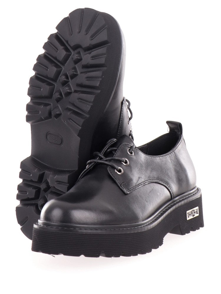Scarpe Cult Nere da Donna con lacci. Queste Scarpe con lacci donna sono realizzate in vera pelle e sono caratterizzate da suola in gomma alta e confortevole con logo Cult in metallo sul tallone.