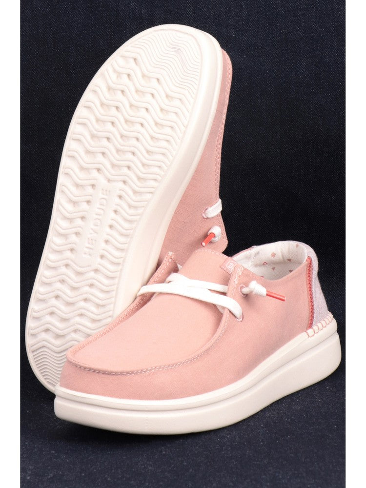 Scarpe Hey Dude rosa da donna Wendy Rise. Queste scarpe Hey Dude rosa hanno la tomaia in tessuto traspirante, la suola in gomma e la tecnologia Flex&Fold per il massimo comfort. Sul davanti di questimocassini Hey Dude troviamo la chiusura a lacci e delle morbide cuciture a contrasto colore.