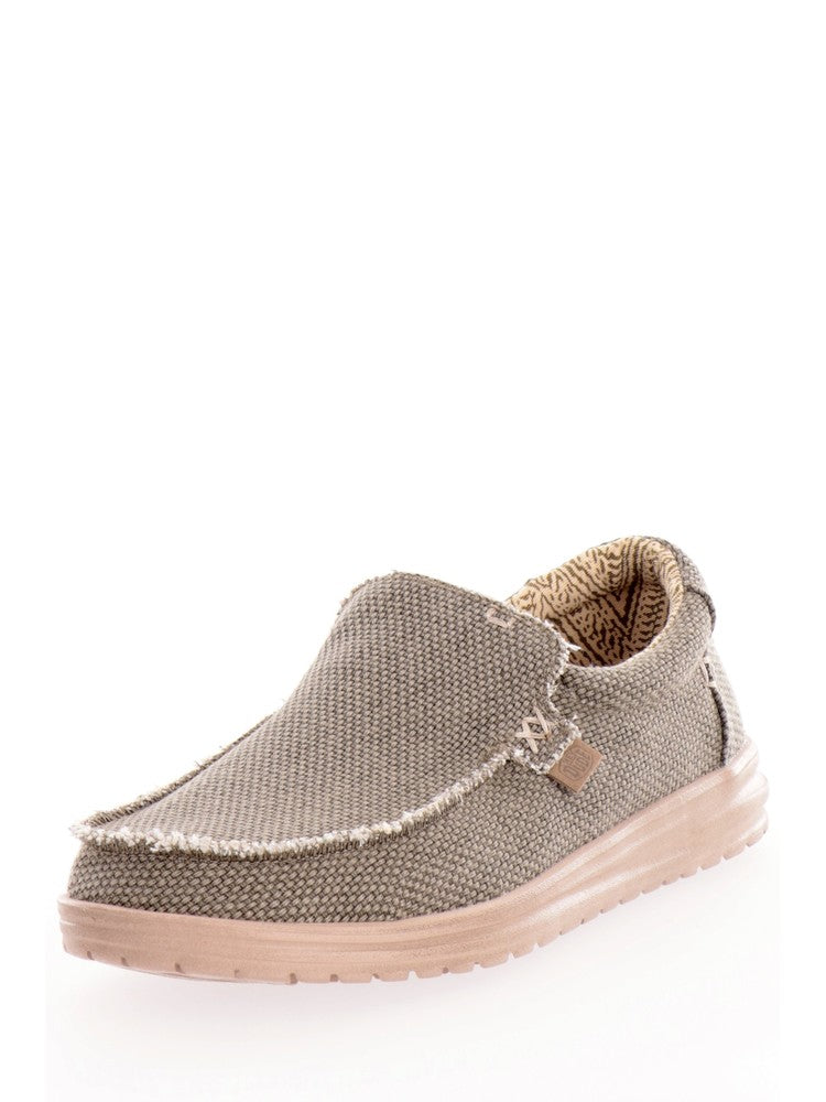 Scarpe Hey Dude verde militare da uomo, modello Mikka Braided. Queste scarpe Hey Dude verde militare hanno la tomaia in tessuto traspirante, la suola in gomma e la soletta con tecnlogia Flex&Fold peril massimo comfort. Sul davanti di queste Hey Dude troviamo un laccio elasticizzato che agevola l'entrata del piede e il logo del brand ricamato sul lato posteriore a contrasto colore.