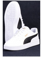 Scarpe Puma bianche da uomo Caven 2.0 39229. Queste sneakers Puma hanno la tomaia in mesh, la suola in gomma e degli inserti neri e oro. Sul davanti di queste Puma troviamo la classica chiusura a lacci, i fori traspiranti e il logo del brand a contrasto colore.