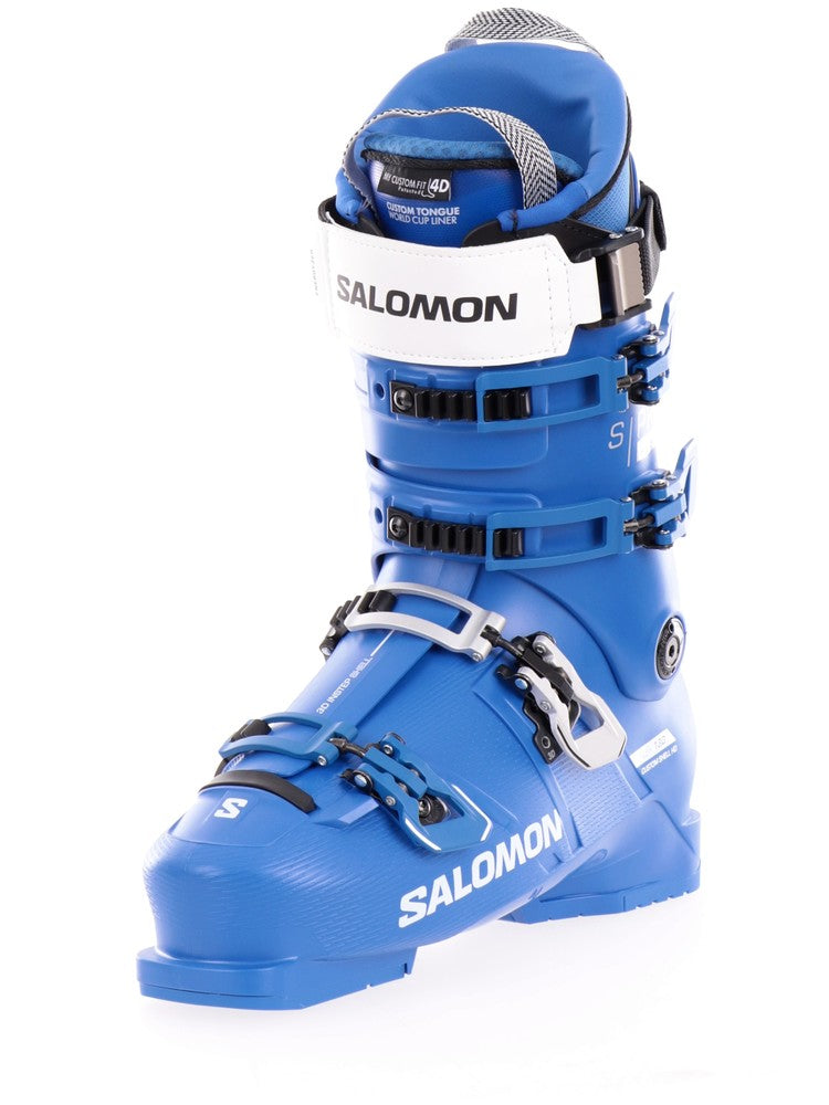Scarponi sci Salomon blu da uomo S/PRO Alpha 130 EL L47044. Questi scarponi Salomon blu ha il nuovo scafo con tecnologia 3D Instep che permette di bloccare meglio il tallone, la scarpetta CustomFit 4D con Talyn termoformabile e 4 ganci in alluminio 3D avvitati. Totalmente personalizzabile e con linguetta completamente smontabile, questo scarpone di 98 mm di larghezza è un must have per gli amantidelle piste.