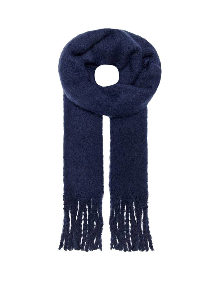 Sciarpa Only blu da donna Life. Questa sciarpa Only blu a tinta unita con orli sfrangiati è stata realizzata in tessuto morbido al tatto, comodo da indossare e soprattutto caldo, un must have per le fredde giornate invernali.