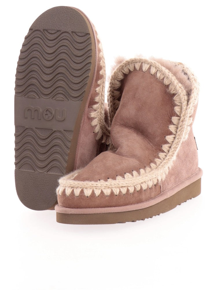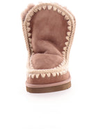 Scarpe Mou tortora da donna Eskimo 18 101001A. Questi stivali Mou marroni hanno la tomaia realizzata in 100% pura lana, la suola in gomma per il massimo comfort e la fodera in shearling. Sul davanti di questi stivaletti Mou marroni troviamo la 'chiusura' slip on e il patch del brand applicato sulla zona tallonare a contrasto colore.