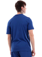 T-shirt Champion blu da uomo USA 219747, realizzata in 100% puro cotone. Questa maglia Champion blu ha il girocollo realizzato in tessuto a costine, le maniche corte, il fondo regolare e la maxi stampa del brand sul davanti a contrasto colore.