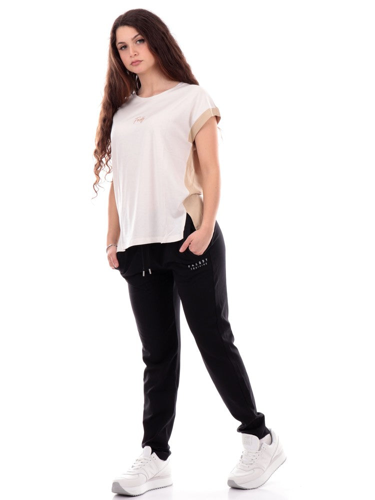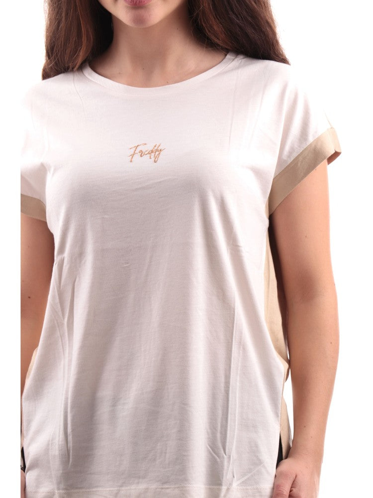 T-shirt Freddy beige da donna S4WSLT4, realizzata in morbido cotone. Questa t-shirt Freddy presenta il logo del brand stampato sul davanti con glitter.