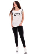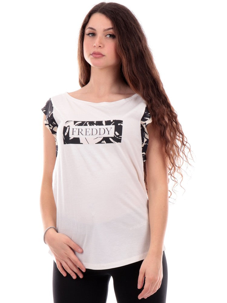 T-shirt Freddy da donna beige S4WSLT1, realizzata in morbido cotone. Questa t-shirt Freddy presebta una maxi stampa del logo sul davanti e una placchetta logata dietro.