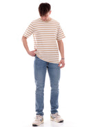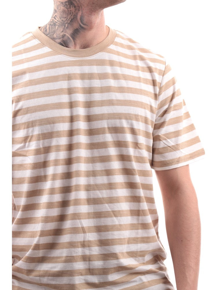 T-shirt Jack Jones beige da uomo a righe Stripe 12252176, realizzata in morbido cotone. Questa maglia Jack Jones beige girocollo ha le maniche corte, il fondo regolare e la fantasia a righe all over.