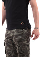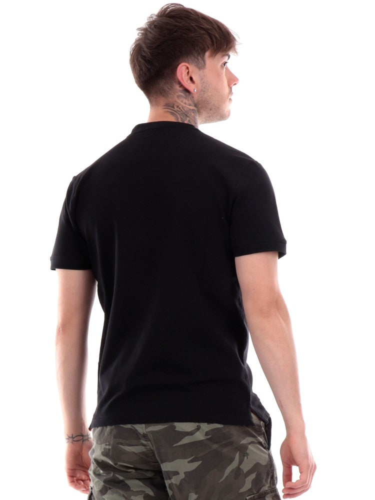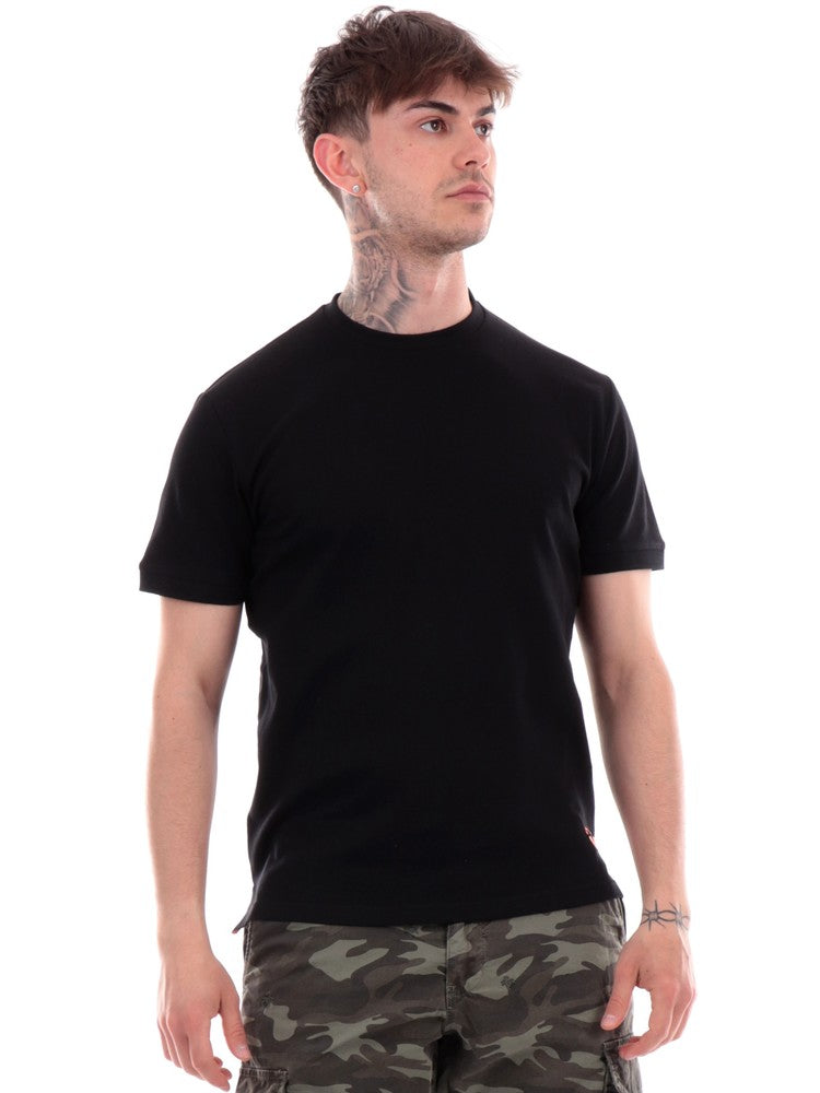 T-shirt Markup nera da uomo Piquet MK11004, realizzata in 100% puro cotone. QUesta maglia Markup nera girocollo ha le maniche corte, il fondo con spacchi laterali e il logo del brand a contrasto colore.