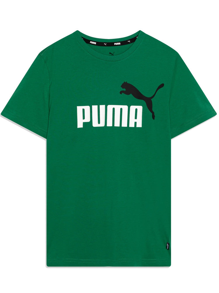 T-Shirt Puma verde da bambino 58698. Questa maglietta Puma verde girocollo ha le mancihe corte, la stampa del brand applicata sul davanti, la vestibilità regolare e la composizione 100% cotone che larende sempre morbida e traspirante al contatto con la pelle.