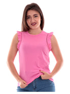 Top Only maniche a farfalla rosa da donna 15289579, realizzato in 100% puro cotone. Questa t-shirt Only rosa girocollo ha le maniche a farfalla e la vestibilità morbida.
