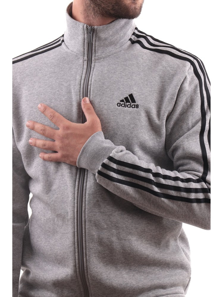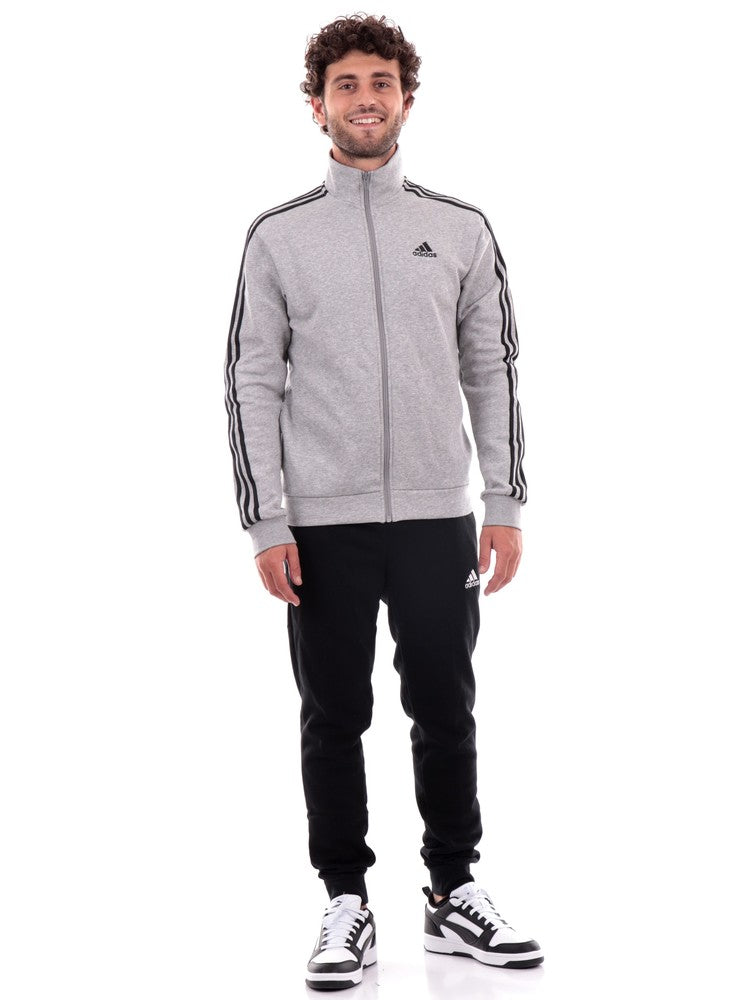 Tuta Adidas Grigia da Uomo composta da felpa a collo alto 3stripes con tasche e pantaloni neri con polsini e tasche.