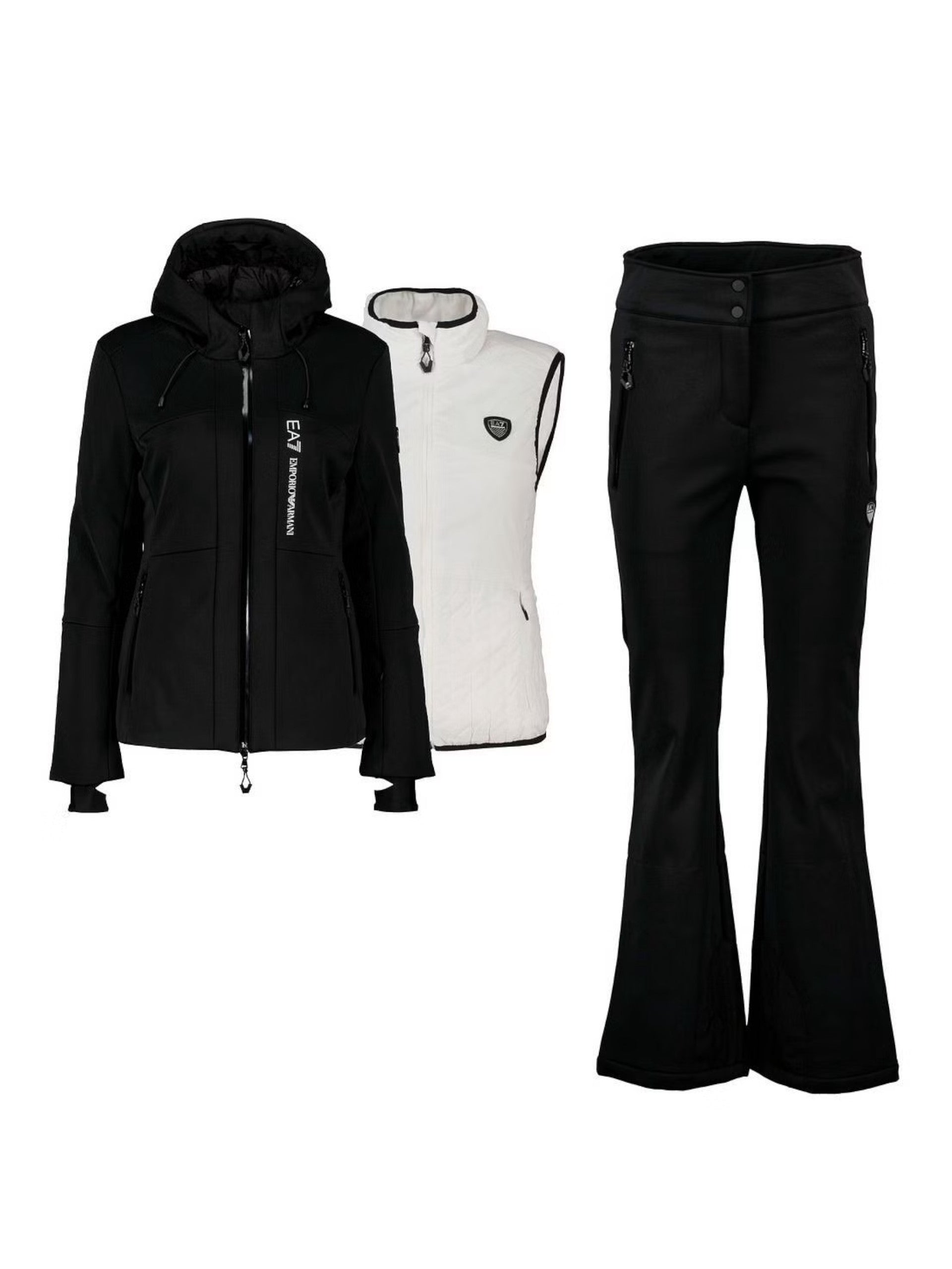 Tuta sci Emporio Armani nera da donna con gilet bianco rimovibile 6DTV01TN8HZ