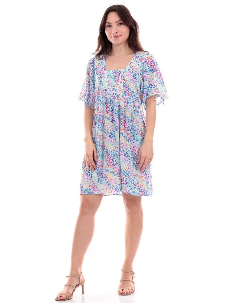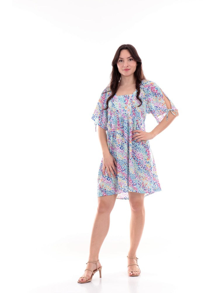 Vestito Molly Bracken bianco da donna Woven Dress LA53BE. Quest'abito Molly Bracken bianco ha le maniche corte ampie con spacchi sulle spalle, la fantasia all over multicolore, l'apertura sulla schiena ed il fondo regolare.