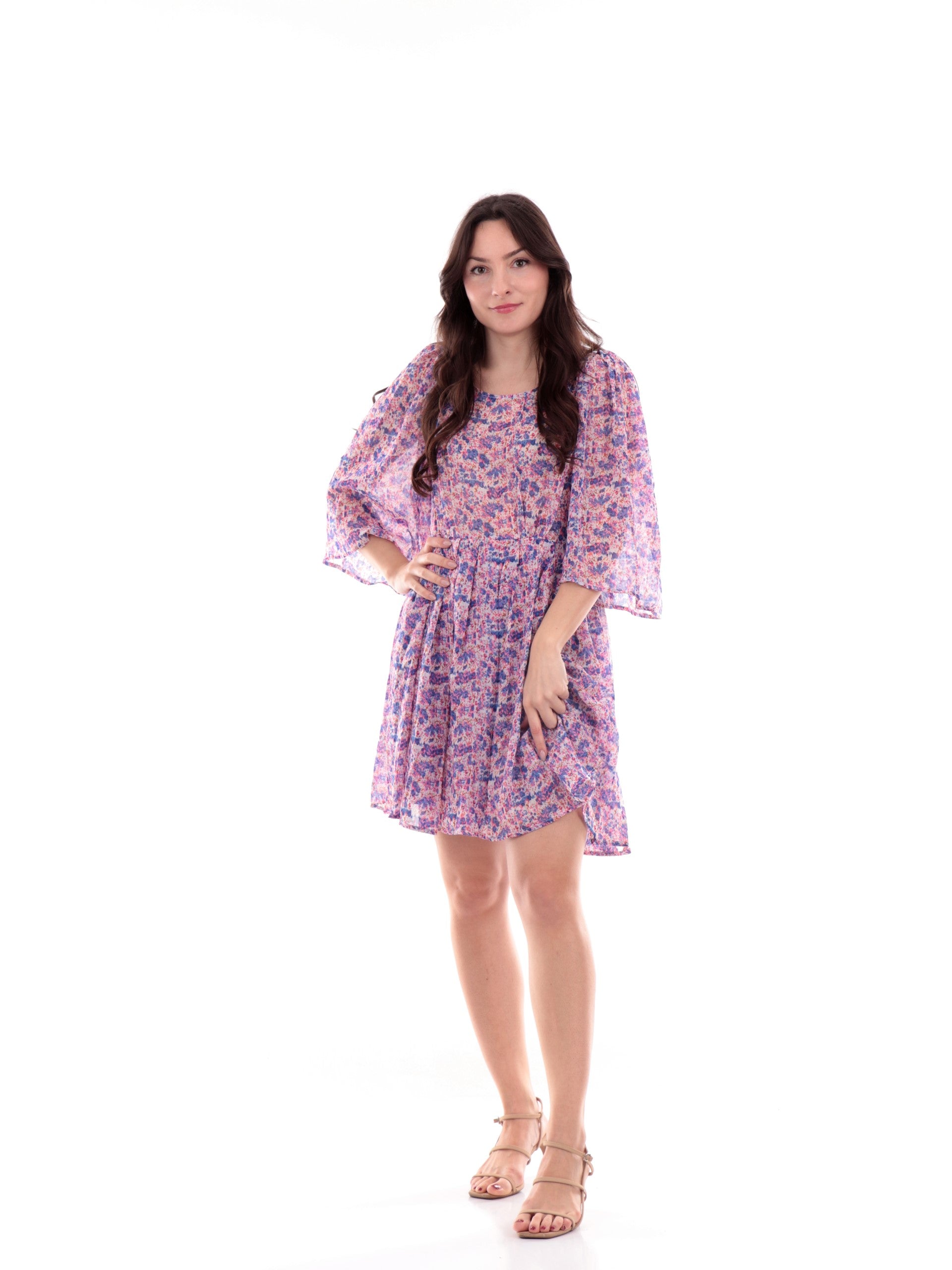 Vestito Molly Bracken rosa da donna Woven Dress TR167BE. Quest'abito Molly Bracken rosa girocollo ha la chiusura mezza zip dietro il collo che ne facilita la vstibilità, inserti in lurex, fantasia floreale all over, le maniche a palloncino a 3/4, il fondo regolare e d il sottogonna in tinta.