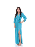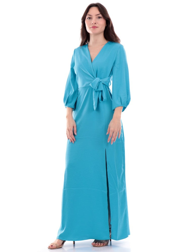 Vestito Only celeste da donna Maxi Dress Wvn 15292597. Quest'abito Only celeste ha lo scollo a V, le maniche a 3/4, la cintura in tessuto da legare in vta tono su tono e lo spacco sul fondo.